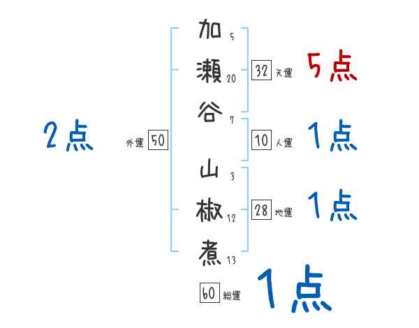 加瀬谷山椒煮さんの画数の鑑定結果