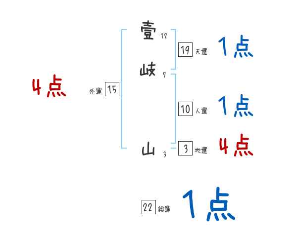 天運![]() | 壹岐山さんの天運は19画の1つ星!優れた才能を持ちますが、協調性が足りないことも。周りの人と協力する事を意識しましょう。 家系が持つ宿命的な運勢を表します。祖先から受け継いだ苗字ですので自分の力が及びません。家柄を象徴します。 |