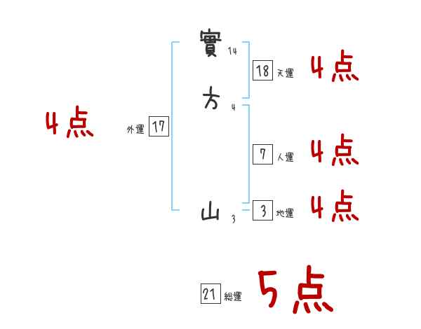 外運![]() | 實方山さんの外運は17画の4つ星!積極的な行動力。地位を気づき財産を手に入れる。純粋な心と直感力。 生活面を象徴する運勢です。外部から受ける影響力を表し、結婚運、家庭運や職場、環境への順応性を表します。 |