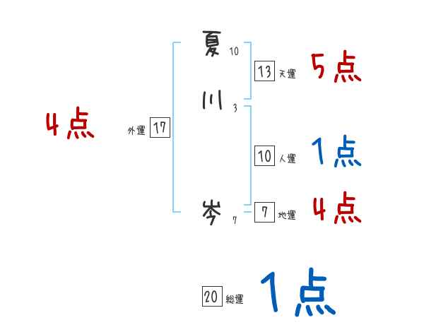 夏川岑さんの画数の鑑定結果