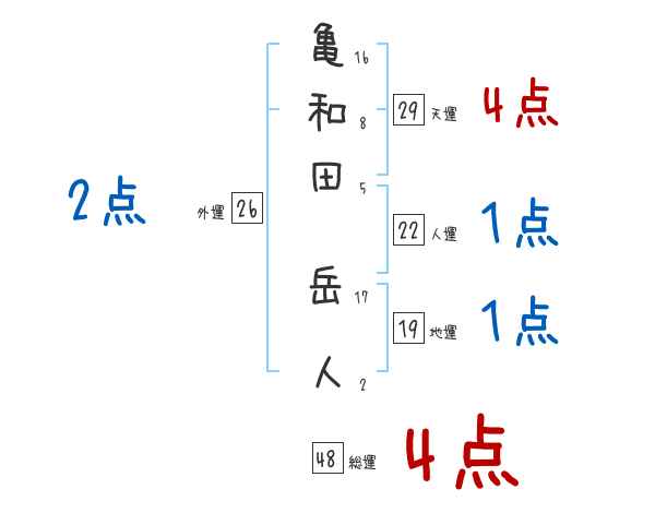 亀和田岳人さんの画数の鑑定結果