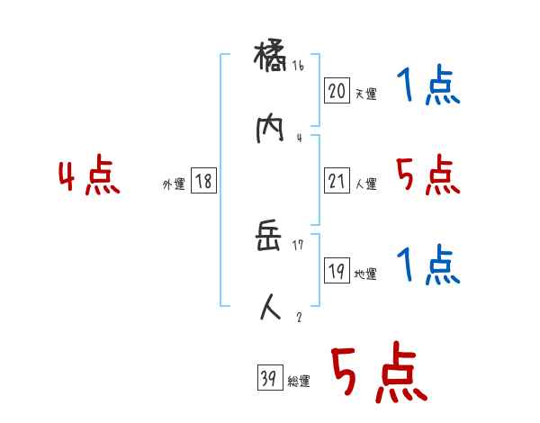 橘内岳人さんの画数の鑑定結果