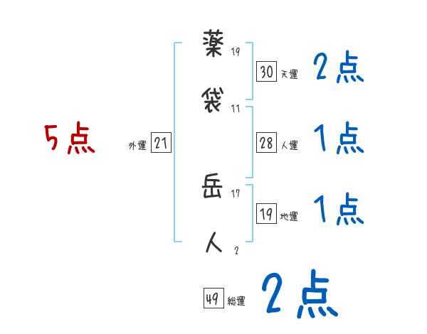 薬袋岳人さんの画数の鑑定結果