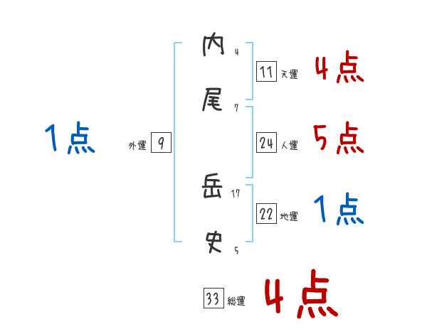 内尾岳史さんの画数の鑑定結果
