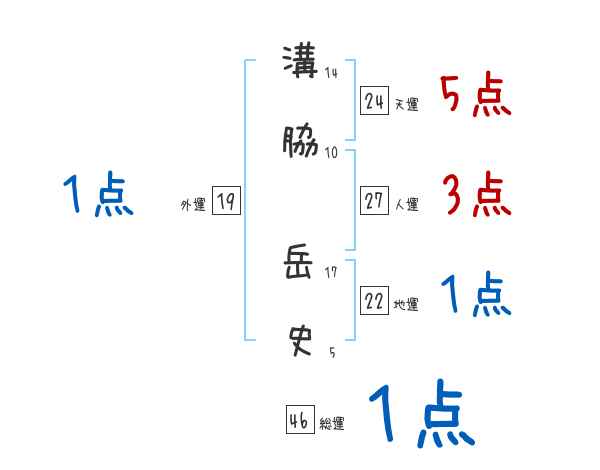 天運![]() | 溝脇岳史さんの天運は24画の5つ星!家庭運が良く順調な人生。金運にも恵まれる。 家系が持つ宿命的な運勢を表します。祖先から受け継いだ苗字ですので自分の力が及びません。家柄を象徴します。 |