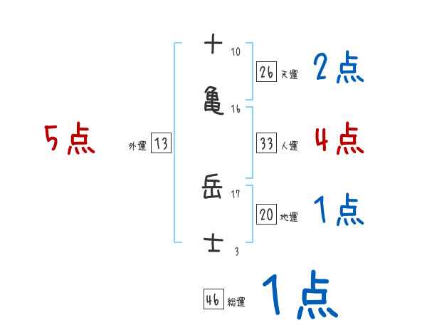十亀岳士さんの画数の鑑定結果