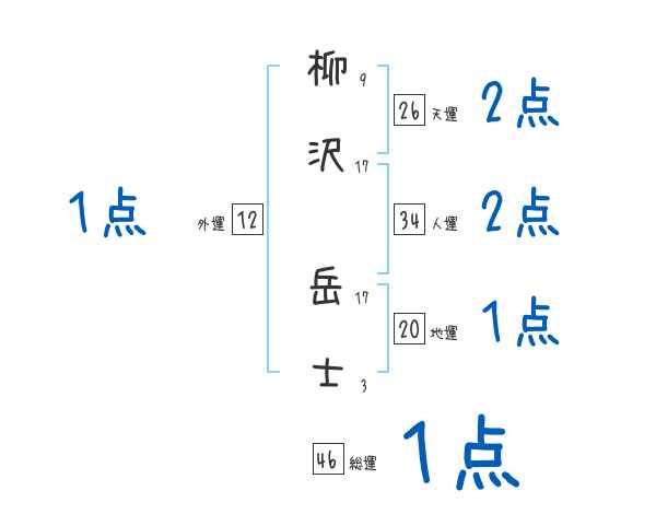 柳沢岳士さんの画数の鑑定結果