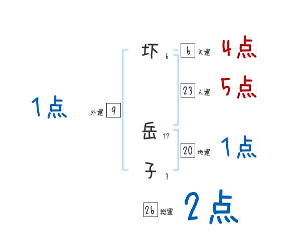 天運![]() | 圷岳子さんの天運は6画の4つ星!慎重な努力家で信頼を得る。誠実な精神で向上心に優れる。 家系が持つ宿命的な運勢を表します。祖先から受け継いだ苗字ですので自分の力が及びません。家柄を象徴します。 |