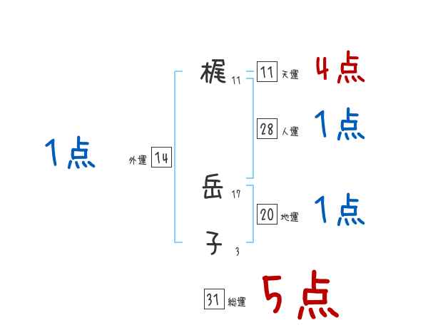 梶岳子さんの画数の鑑定結果