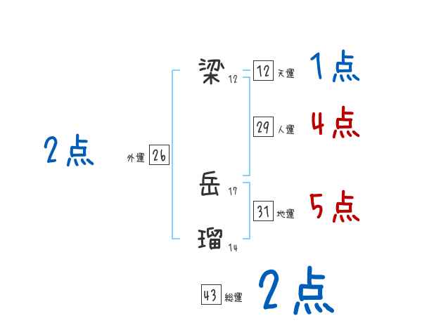 梁岳瑠さんの画数の鑑定結果