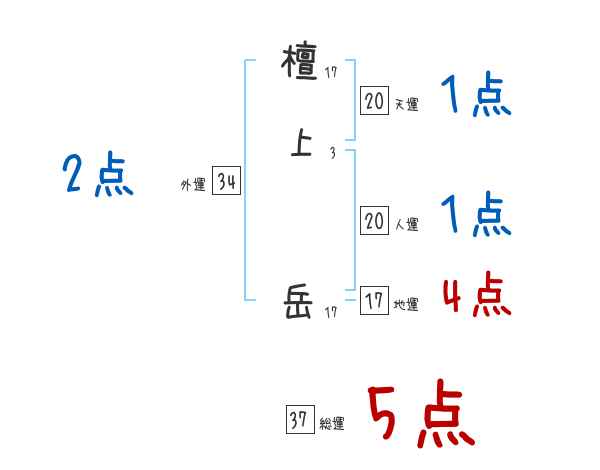 檀上岳さんの画数の鑑定結果