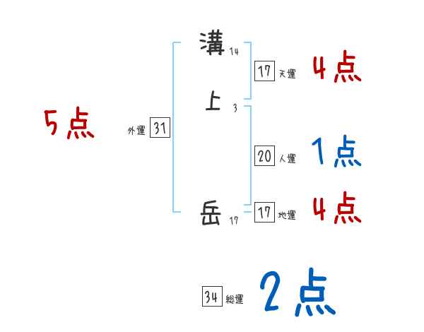 総運![]() | 溝上岳さんの総運は34画の2つ星!独創性に優れるが、自尊心が強く災難に注意しましょう。 あなたの人生を表す1番重要な運勢です。生涯を通じて影響する総合運となり、主に50歳以降の晩年期に影響を及ぼします。 |