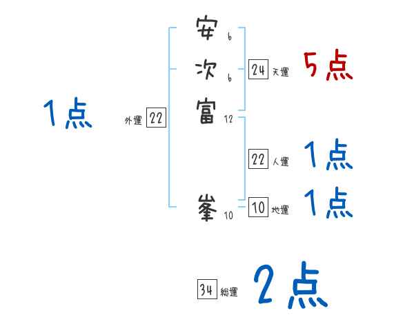 安次富峯さんの画数の鑑定結果