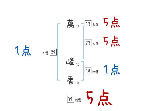 萬峰香さんの画数の鑑定結果