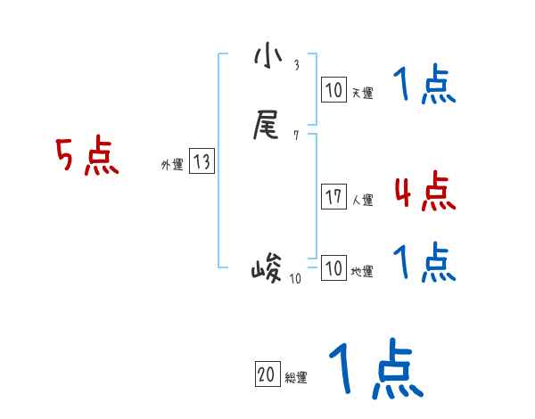 小尾峻さんの画数の鑑定結果