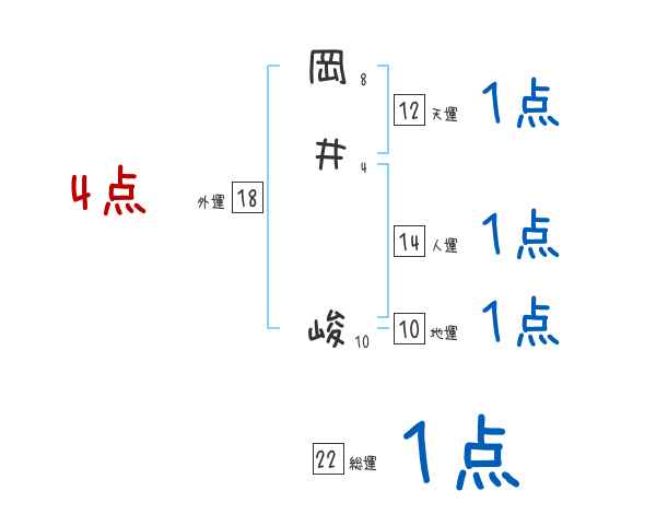 岡井峻さんの画数の鑑定結果