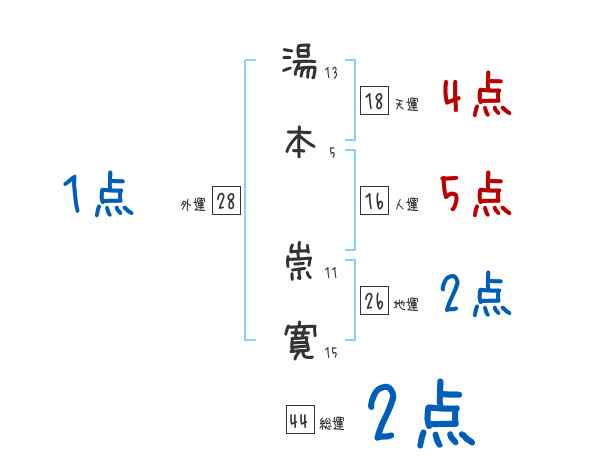 湯本崇寛さんの画数の鑑定結果