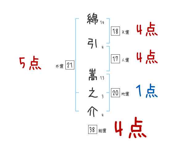 綿引嵩之介さんの画数の鑑定結果