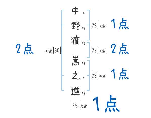 中野渡嵩之進さんの画数の鑑定結果