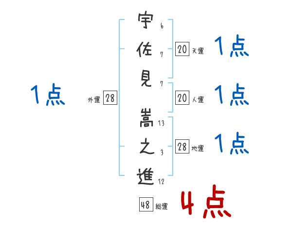 宇佐見嵩之進さんの画数の鑑定結果
