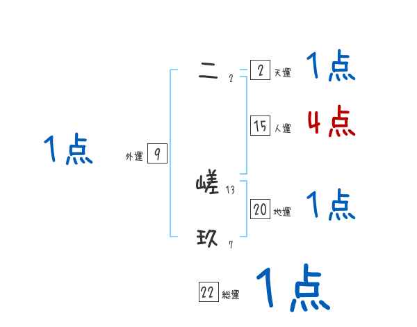 二嵯玖さんの画数の鑑定結果