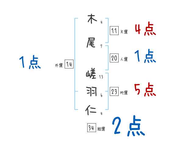 木尾嵯羽仁さんの画数の鑑定結果