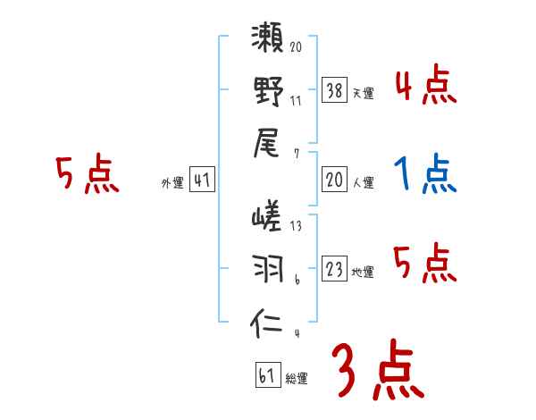 瀬野尾嵯羽仁さんの外運は41画の5つ星