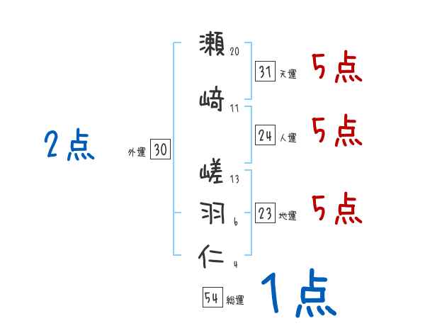 瀬﨑嵯羽仁さんの画数の鑑定結果