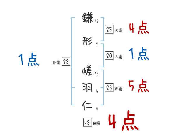 鎌形嵯羽仁さんの画数の鑑定結果