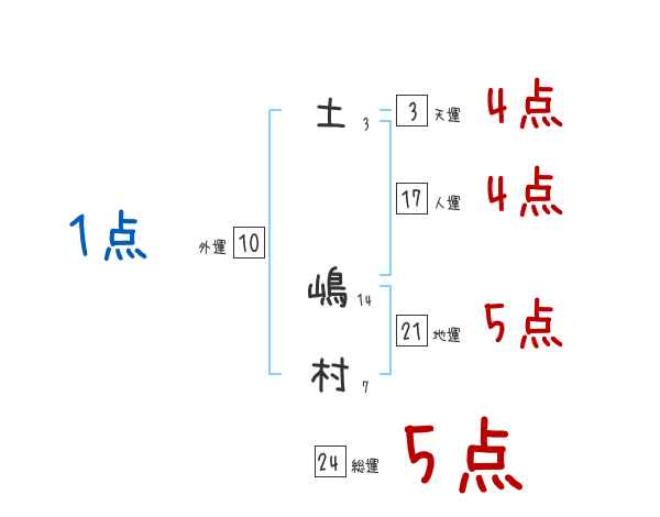 土嶋村さんの画数の鑑定結果