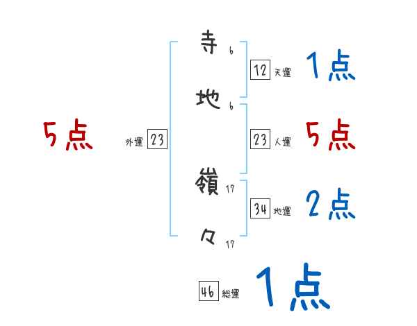 寺地嶺々さんの画数の鑑定結果