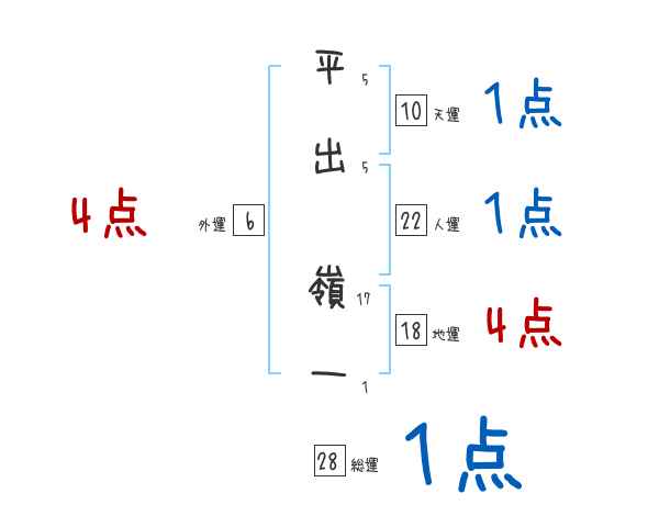 天運![]() | 平出嶺一さんの天運は10画の1つ星!不安を感じやすい傾向。ストレスを抱えないように注意しましょう。 家系が持つ宿命的な運勢を表します。祖先から受け継いだ苗字ですので自分の力が及びません。家柄を象徴します。 |