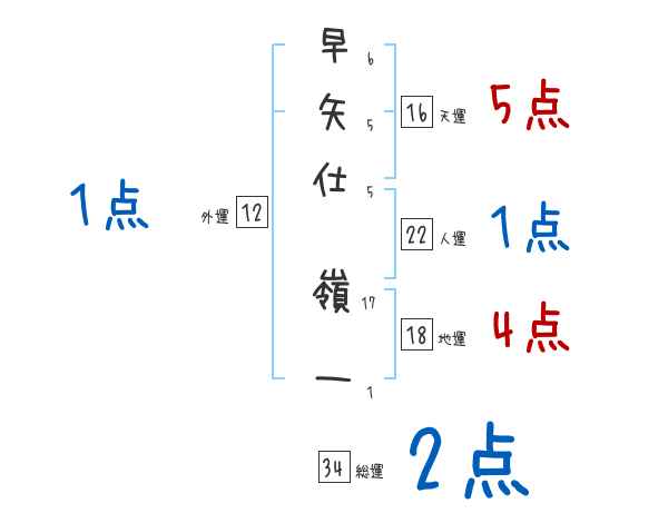 早矢仕嶺一さんの画数の鑑定結果