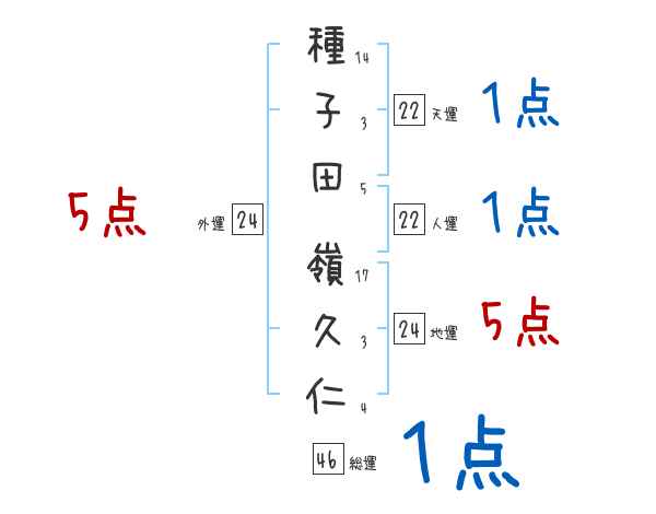 種子田嶺久仁さんの画数の鑑定結果