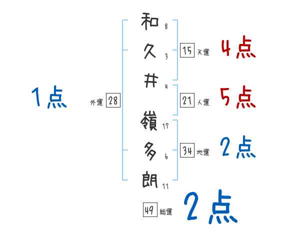 和久井嶺多朗さんの画数の鑑定結果