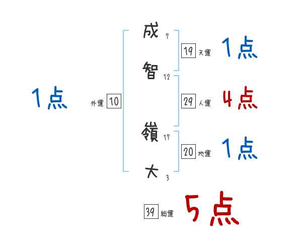 成智嶺大さんの画数の鑑定結果