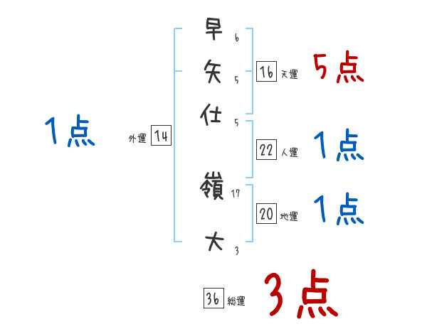 早矢仕嶺大さんの画数の鑑定結果