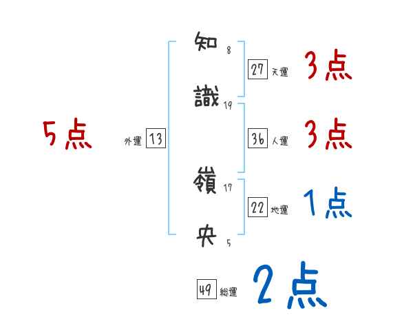 知識嶺央さんの画数の鑑定結果