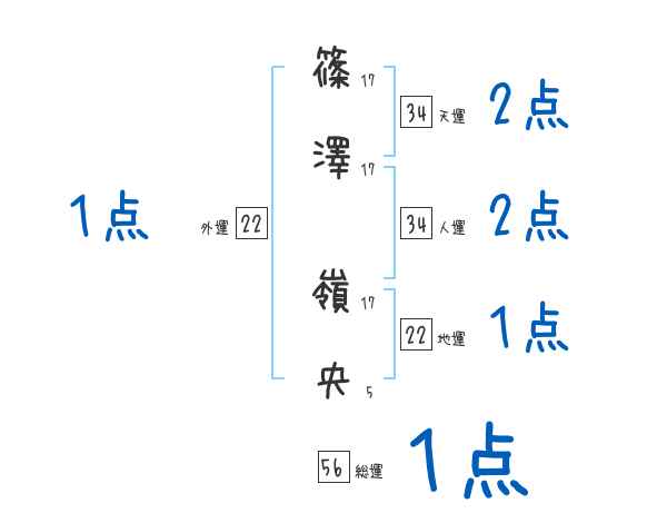 天運![]() | 篠澤嶺央さんの天運は34画の2つ星!独創性に優れるが、自尊心が強く災難に注意しましょう。 家系が持つ宿命的な運勢を表します。祖先から受け継いだ苗字ですので自分の力が及びません。家柄を象徴します。 |