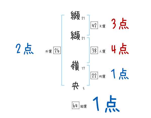 天運![]() | 纐纈嶺央さんの天運は42画の3つ星!病気に注意。多芸であるが消極的でおとなしい。 家系が持つ宿命的な運勢を表します。祖先から受け継いだ苗字ですので自分の力が及びません。家柄を象徴します。 |