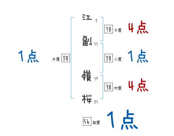 江副嶺桜さんの画数の鑑定結果