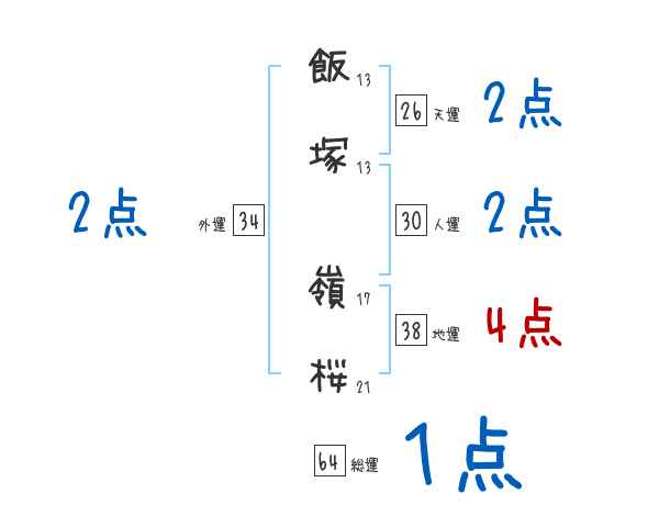 飯塚嶺桜さんの画数の鑑定結果