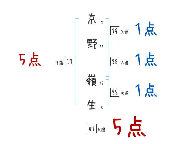 京野嶺生さんの画数の鑑定結果
