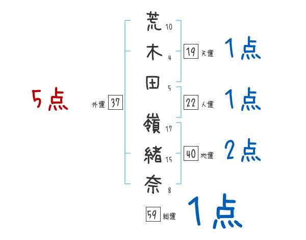 荒木田嶺緒奈さんの画数の鑑定結果