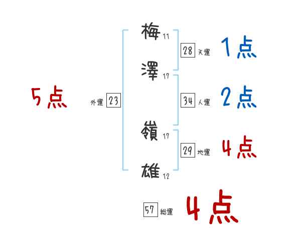 梅澤嶺雄さんの画数の鑑定結果