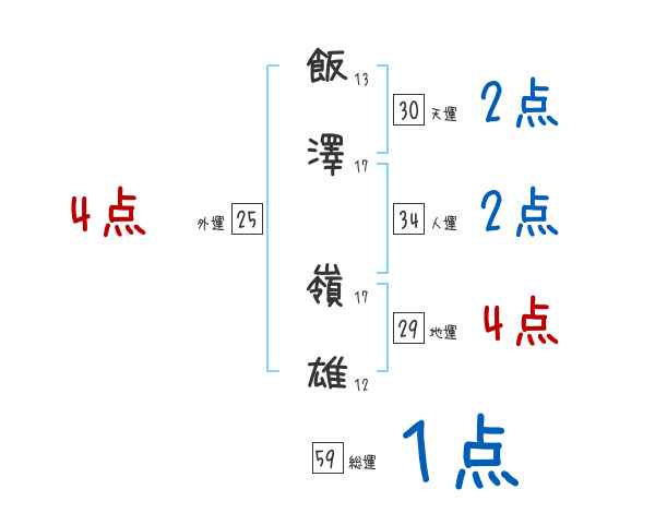 飯澤嶺雄さんの画数の鑑定結果