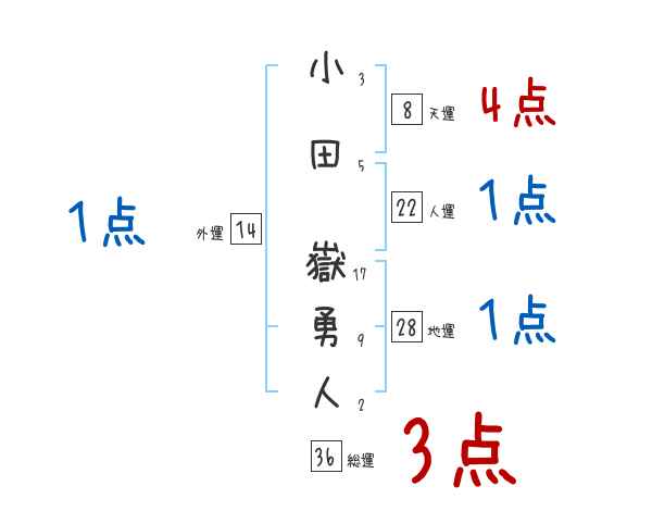 小田嶽勇人さんの画数の鑑定結果