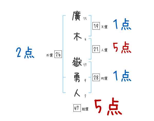 廣木嶽勇人さんの画数の鑑定結果