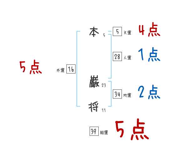 本巌将さんの画数の鑑定結果