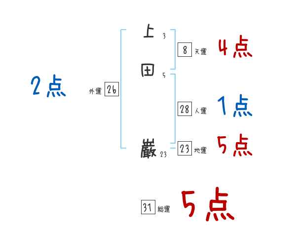外運![]() | 上田巌さんの外運は26画の2つ星!波瀾万丈かも。信頼できる人を大事にしましょう。 生活面を象徴する運勢です。外部から受ける影響力を表し、結婚運、家庭運や職場、環境への順応性を表します。 |